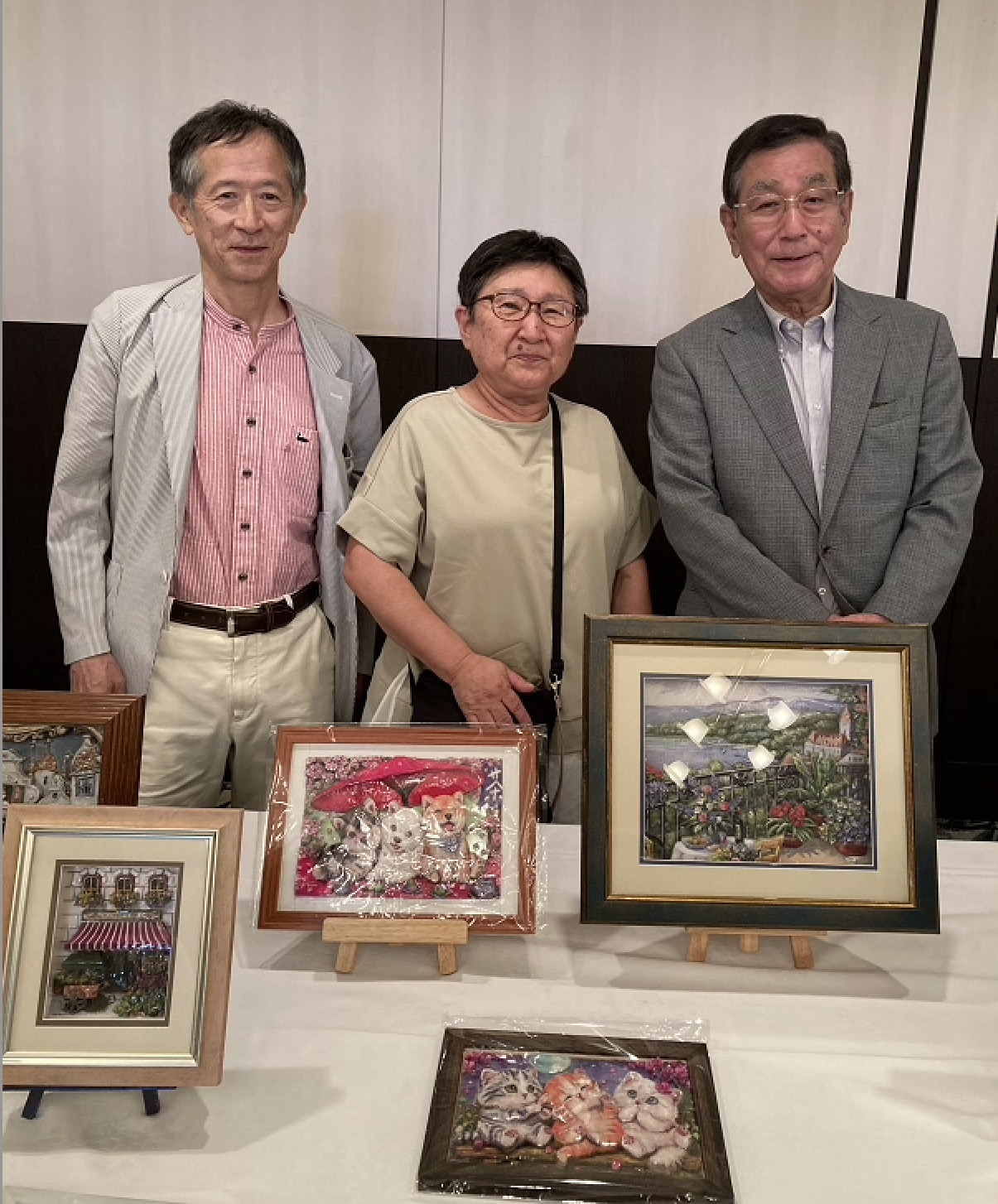 懇親会の会場には会員の能登よりえさん制作のシャドーボックスの作品が展示され、会場に華やかな雰囲気をもたらしてくれました。