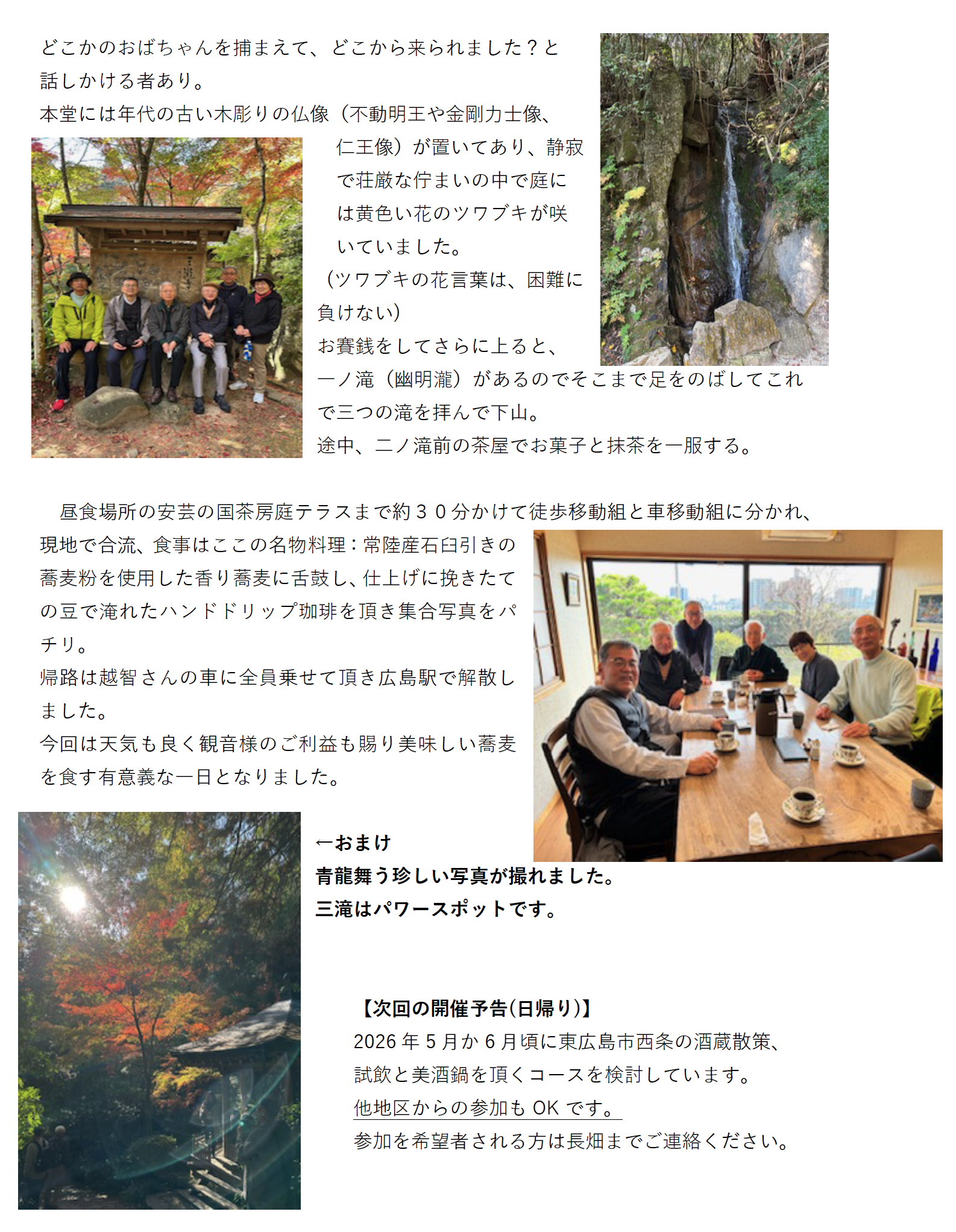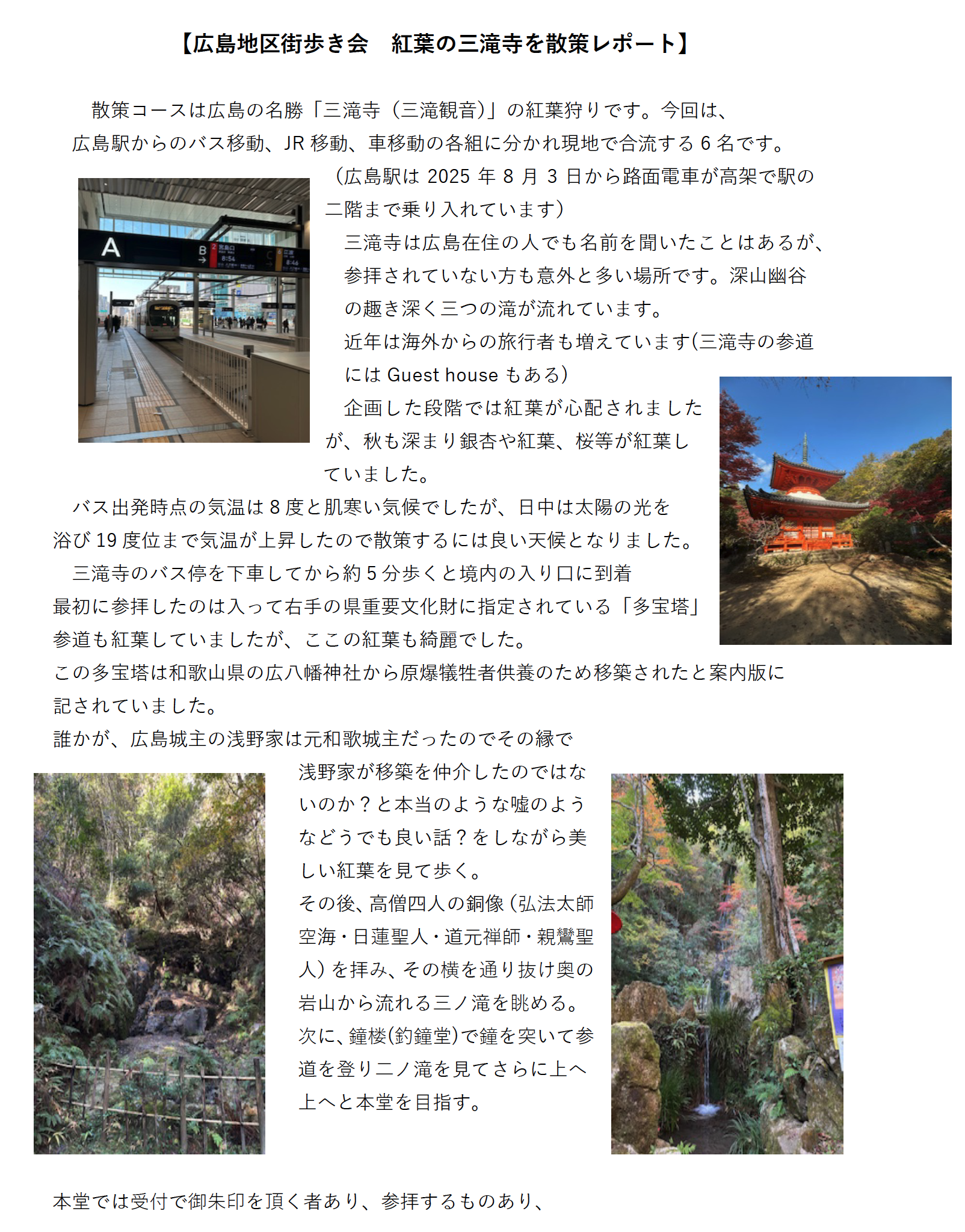 中国四国支部より 「広島地区街歩き会 紅葉の三滝寺を散策レポート」が掲載されました