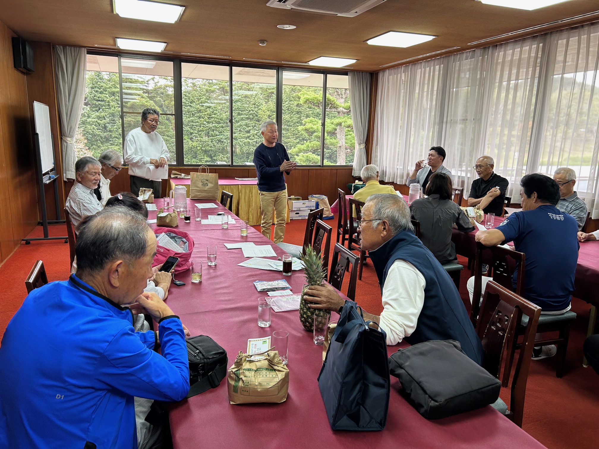 秋晴れの中、3年ぶりに笠間の富士カントリー笠間倶楽部で開催。ダンロップレディースや茨城オープンなど開催された高低差15㍍フラットで広いフェアウェイのメンテナンスの素晴らしいコースでしたが、グリーンは超高速グリーン…3パット4パットで大苦戦…池やバンカーにも苦戦の連続でしたが元気にプレーを楽しんできました。参加16名、賞品は全員に新米のお米をプレゼント、結果は以下のとおりでした。