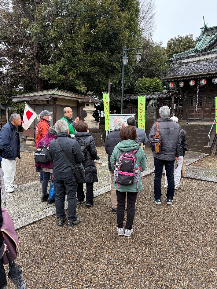 3月4日、時折小雨が降る中、愛宕駅に15名(他の倶楽部から2名が参加)が集合し、最初に、ボランティアガイドさんと愛宕神社に参りました。