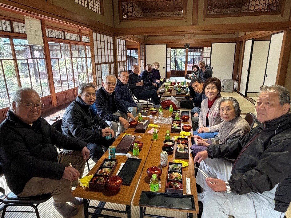 続いて、醤油発祥の碑、千秋社(旧野田商誘銀行)、キッコーマン本社、春風館道場を見て歩き、市民会館へ向かいました。会館でいろいろな説明を受けた後、昼食をいただきました。