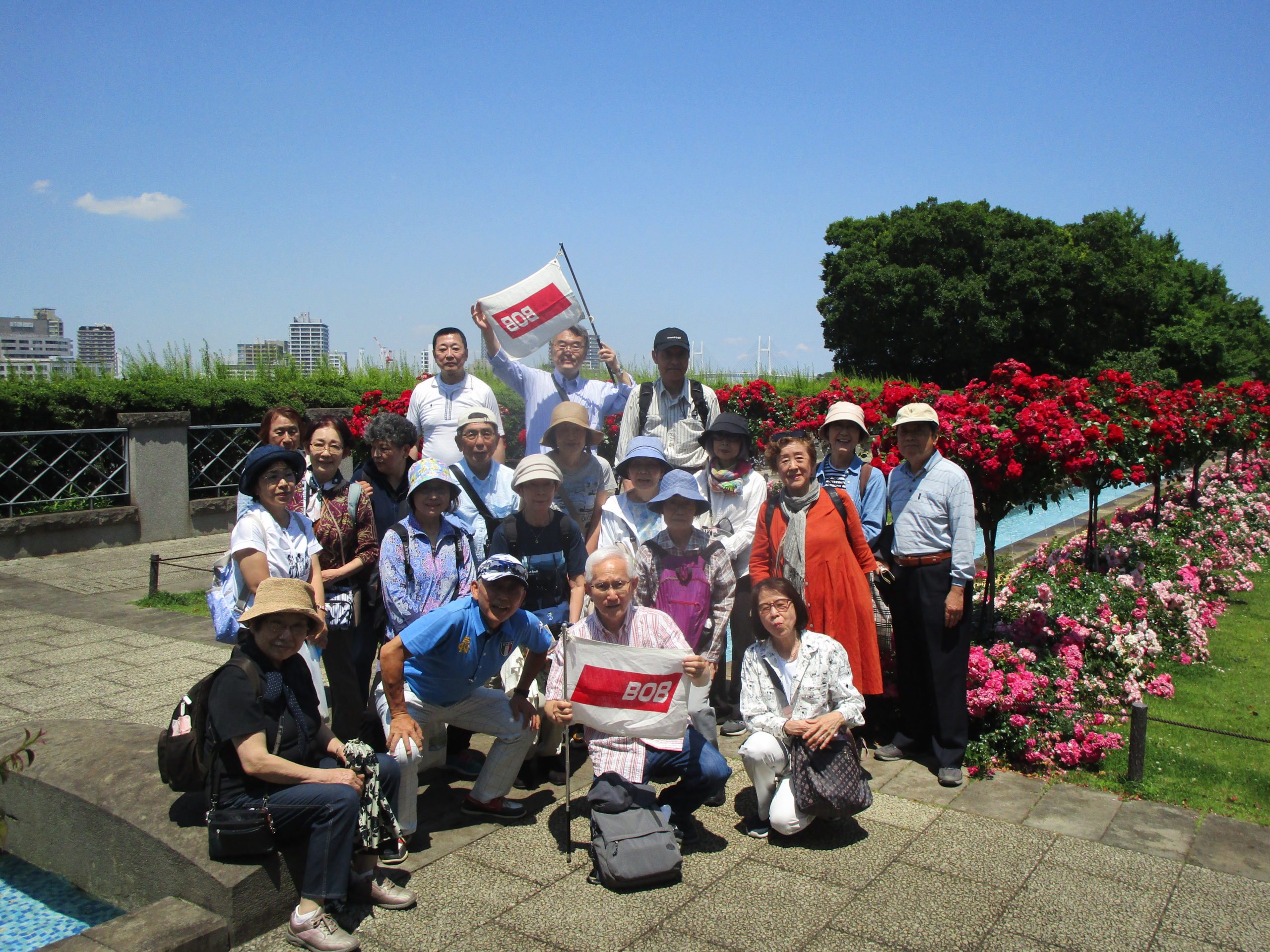 好天に恵まれた6月5日、石川町駅に24名が集合。まず1970年代に流行したファッション「ハマトラ」(横浜トラディショナル)発祥の元町ショッピングストリートを闊歩しました。エスカレーターでアメリカ山公園に上り、山手外国人墓地、バラや紫陽花の美しい港の見える丘公園から、みなとみらい、横浜ベイブリッジの眺望を楽しみ、すっかり気分は晴れ晴れのハマッコです。