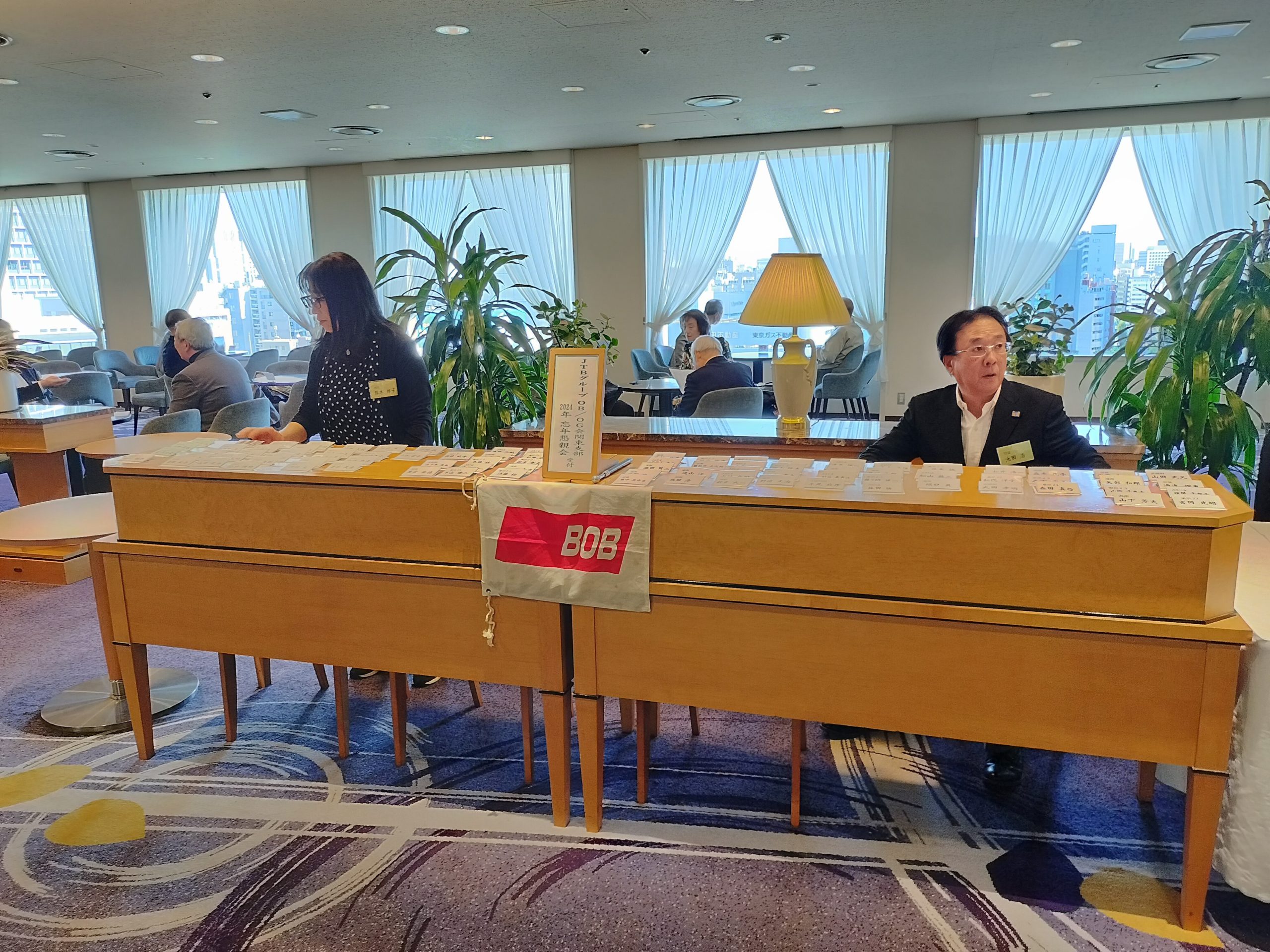支部長挨拶に続き、顧問を務めていただいているJTB常務執行役員山田仁二さんからJTBの現状についての話があり、BOB会本部石川会長の挨拶および乾杯で開宴しました。しばし歓談後、舩山龍二さんの挨拶、お楽しみ抽選会と続き藤本誠さんの中締めでお開きとなりました。