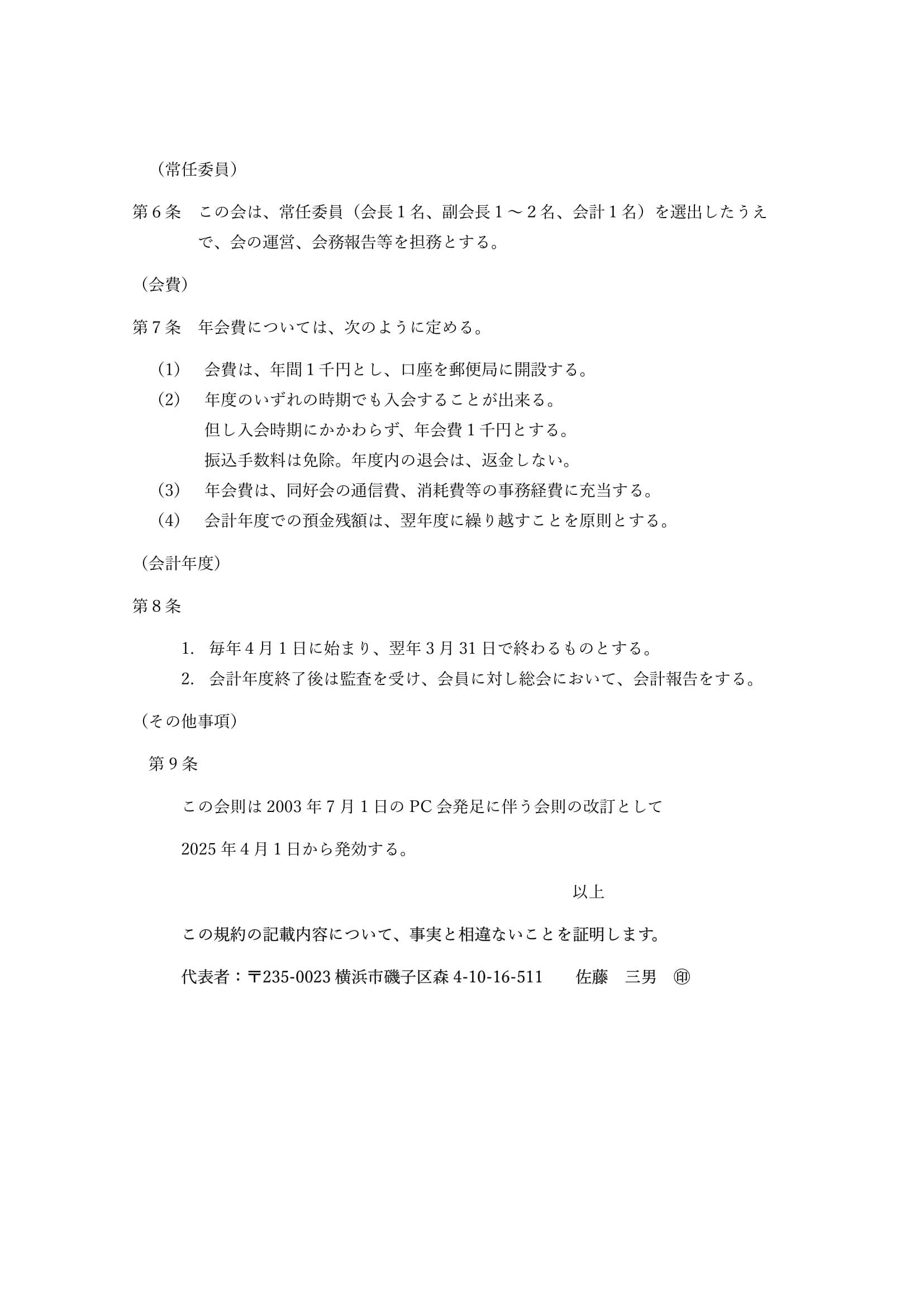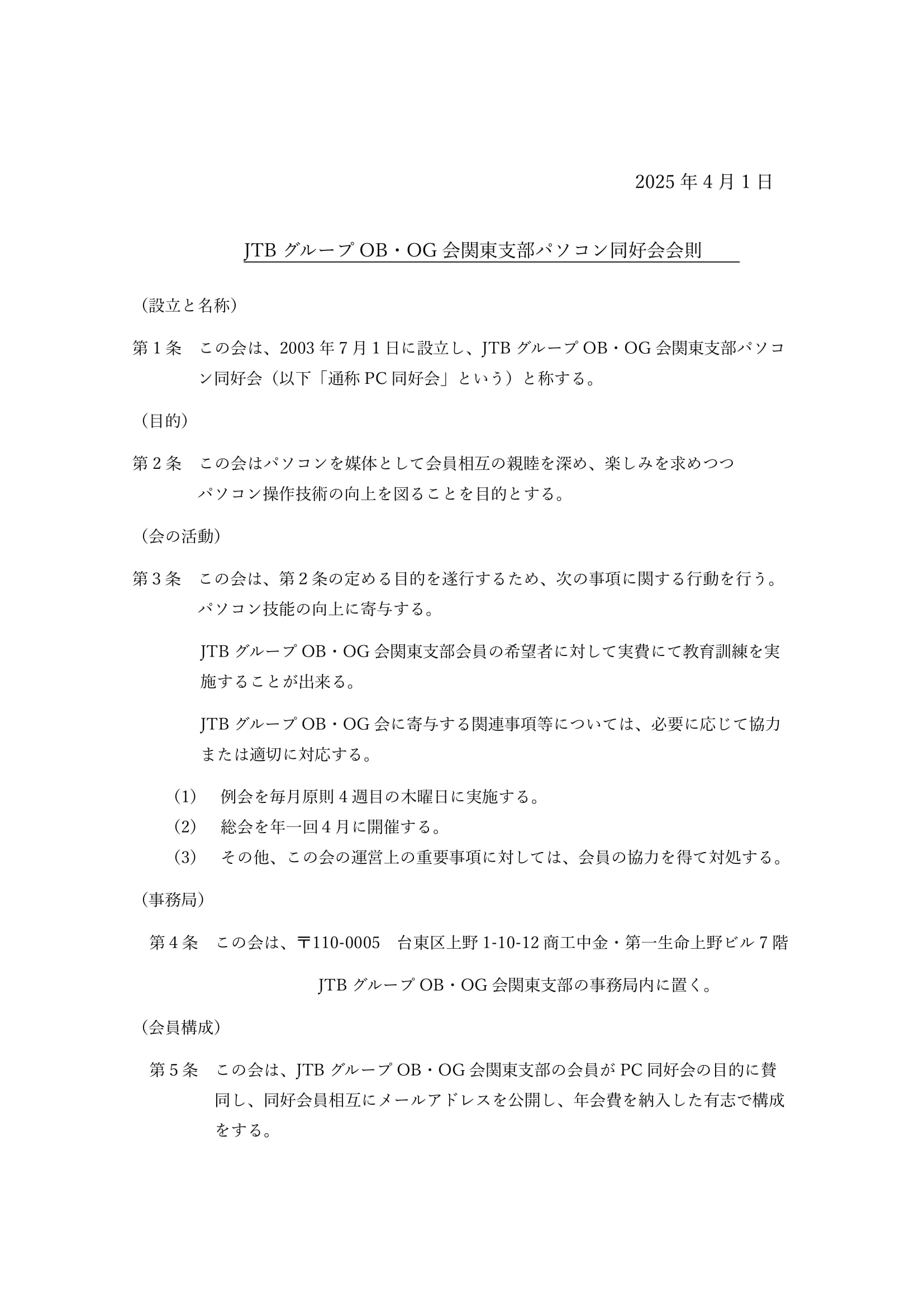 この度、パソコン同好会の会則が一部改訂されましたので、お知らせ致します。